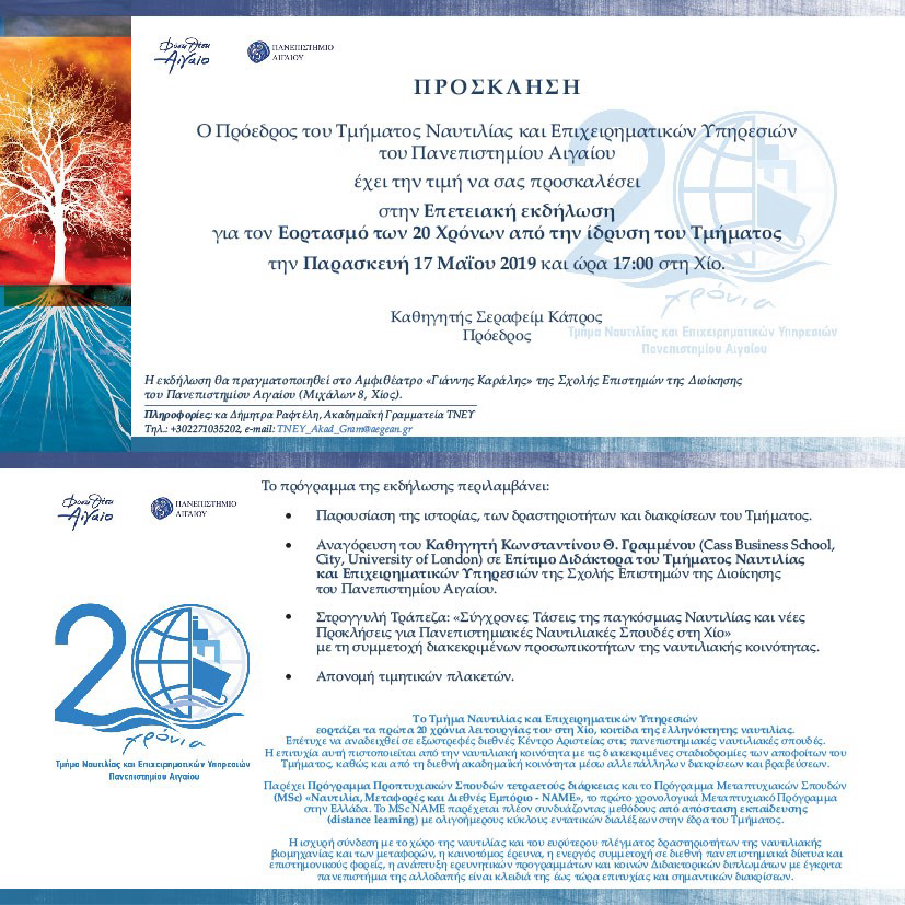 Με την συμμετοχή σημαντικών Ελλήνων και ξένων ομιλητών, μεταξύ των οποίων ο Πρόεδρος της Ένωσης Ελλήνων Εφοπλιστών κ. Θεόδωρος Βενιάμης, ο Πρόεδρος της ECSA κ. Πάνος Λασκαρίδης κα η Υπουργός [...]