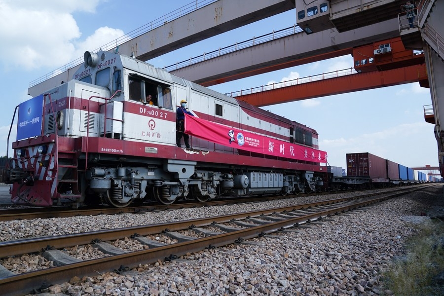 A total of 35 containers with goods weighing about 460 tonnes were first concentrated from Hamburg and Duisburg in Germany to Malaszewicze in Poland and then were carried by the freight train which entered China via Alataw Pass, a major rail port in Xinjiang, to Shanghai.
