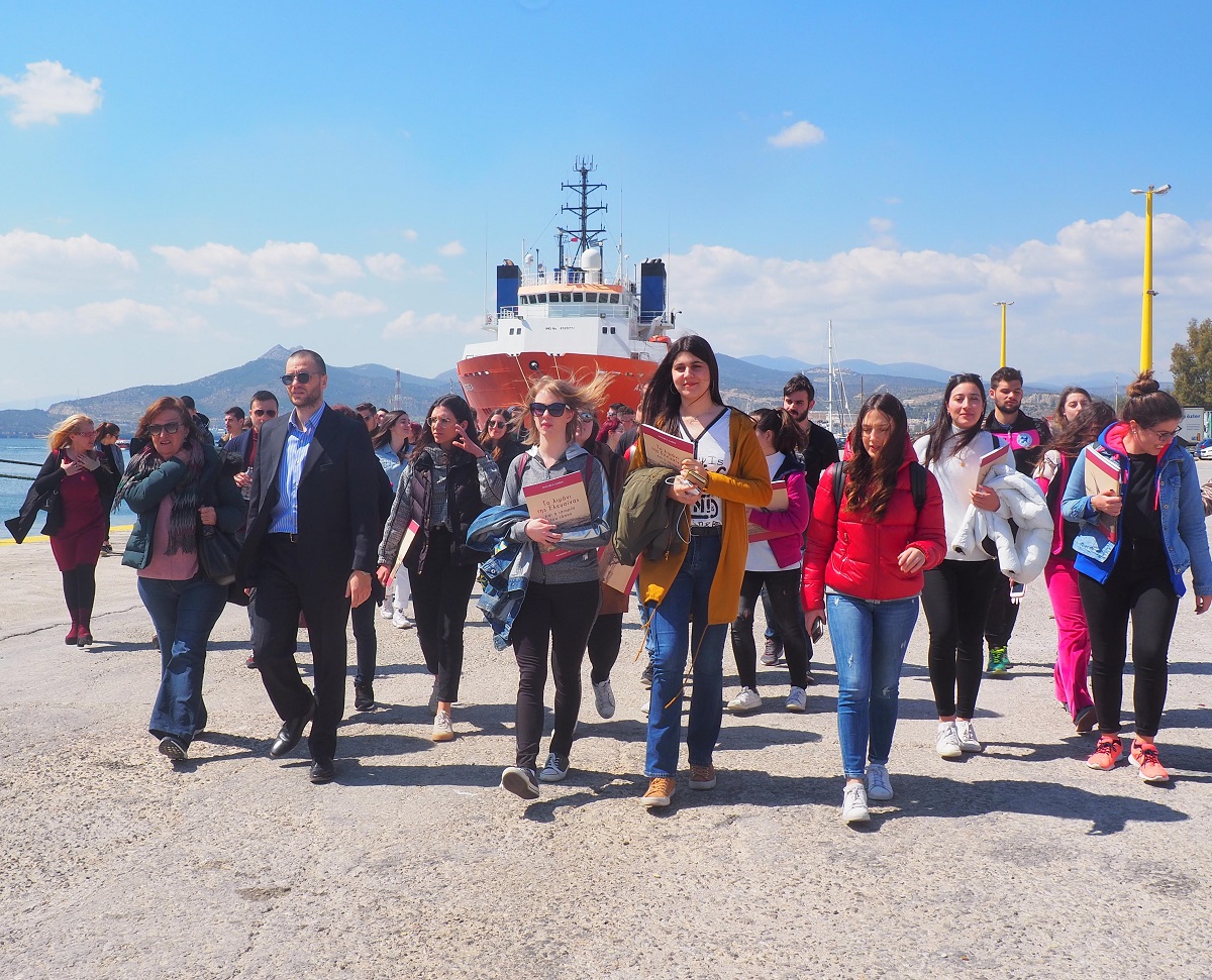 Τέλος οι φοιτητές ξεναγήθηκαν στη θέση Βλύχα, όπου εκεί τους παρουσιάστηκαν συγκεκριμένα παροπλισμένα πλοία τα οποία δημιουργούν προβλήματα στην ομαλή  λειτουργία του λιμένα.