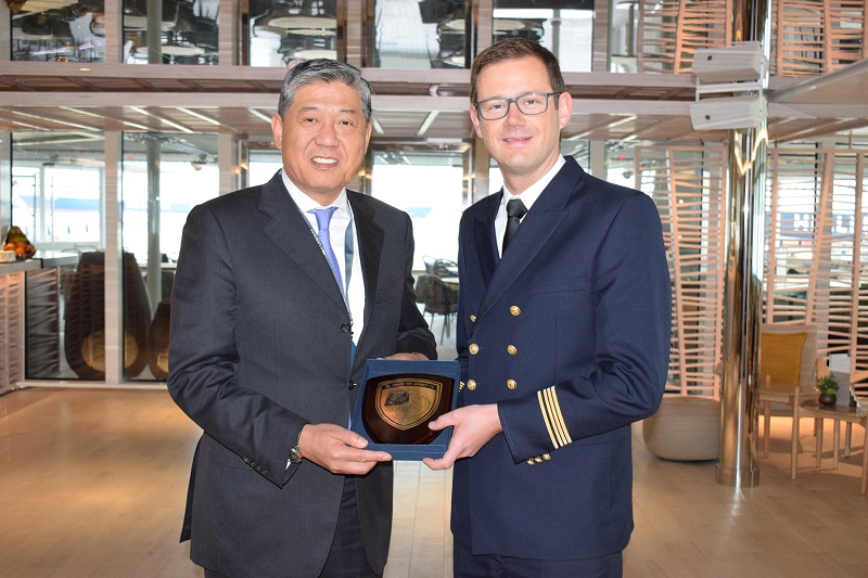 Κατά την εθιμοτυπική τελετή ο Αναπληρωτής Δ/νων Σύμβουλος της ΟΛΠ Α.Ε. επέδωσε στον πλοίαρχο Cpt. Charles Sigmund Teige, τιμητική πλακέτα και δώρα (βιβλία), επισημαίνοντας: “ο Πειραιάς διαθέτει το μεγαλύτερο terminal κρουαζιέρας της Ανατολικής Μεσογείου και αποτελεί ένα σύγχρονο και ασφαλές λιμάνι που μπορεί να φιλοξενήσει τα μεγαλύτερα πλοία στον κόσμο παρέχοντας ποιοτικές υπηρεσίες σύμφωνα με τα διεθνή πρότυπα ISO”.